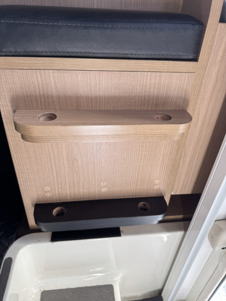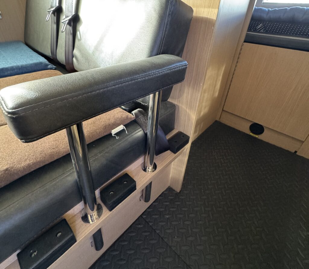 「邪魔」と感じていた純正の装備を、必要な場所で「役立つ」アイテムへと生まれ変わらせるDIY改造は、まさにキャンピングカーの醍醐味です。この一手間で、走行中の快適性だけでなく、特に高齢者の方の乗り降りの安全性と、車内での動線確保という長年の課題が一気に解決しました。